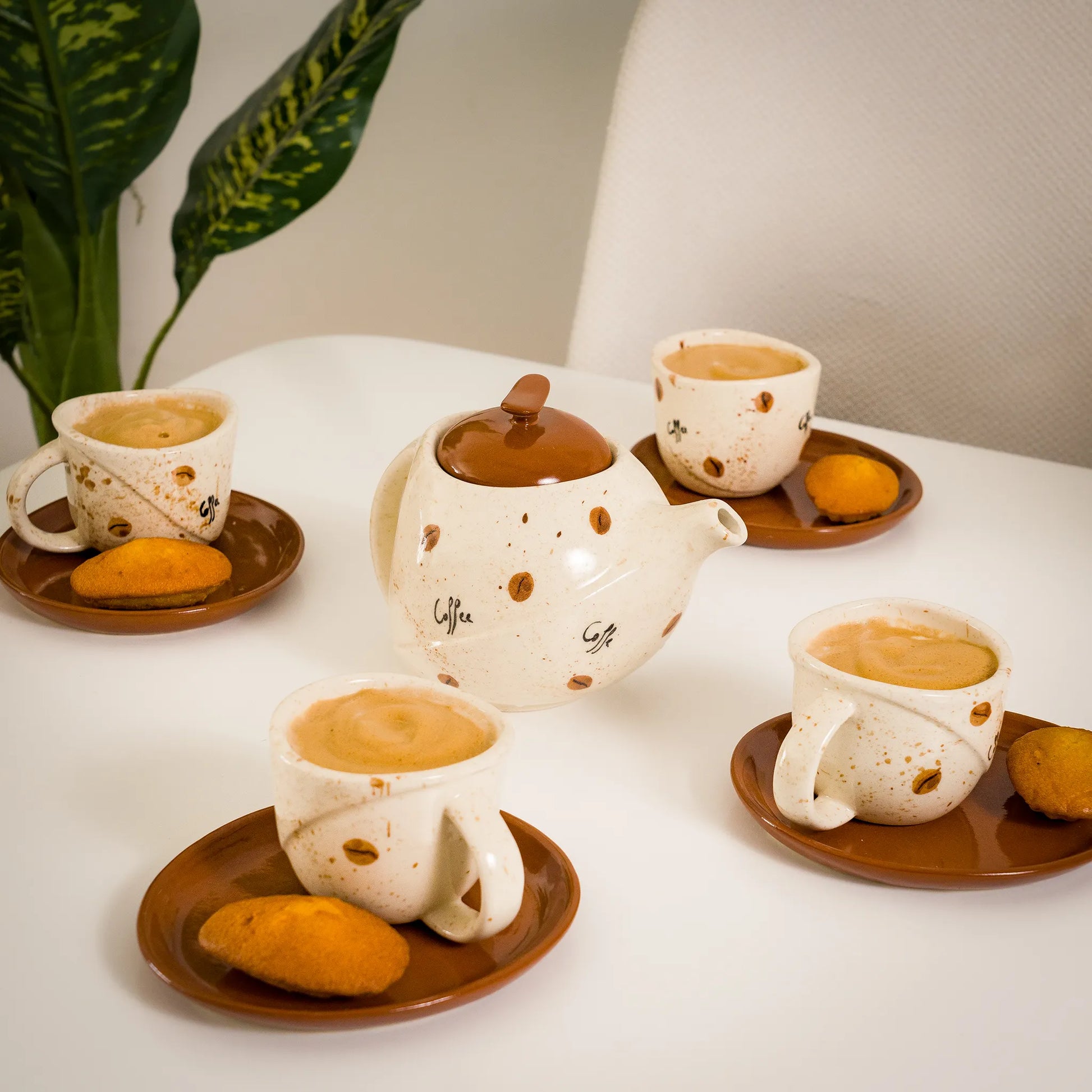 Enjoy your coffee moments with authenticity and charm with our handmade ceramic Cafiana coffee set. Designed for 4 persons, this artisan-crafted set combines functionality with a coffee-inspired aesthetic. With its bean motifs and warm tones, it transforms everyday coffee breaks into special occasions.