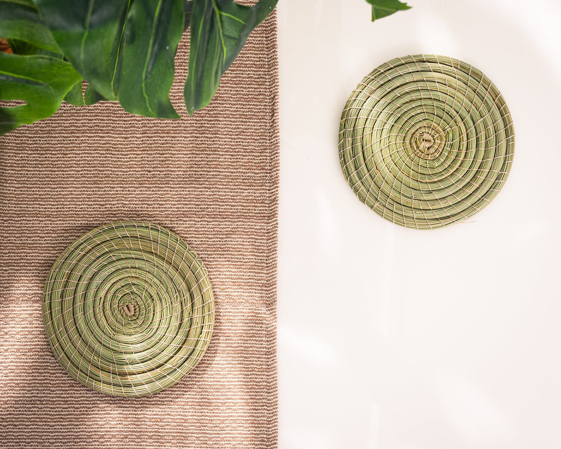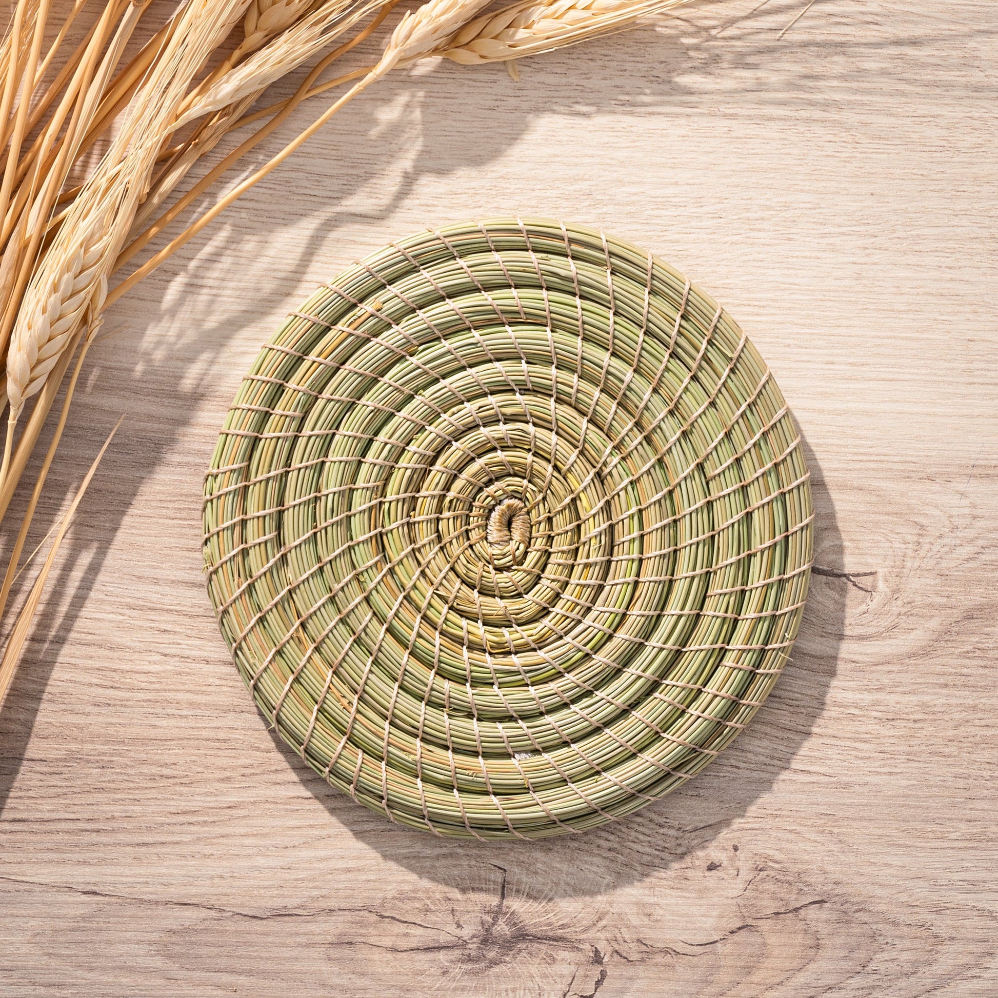 Description: This 15 cm Halfa coaster is handcrafted and made from 100% natural Halfa material. It is not only functional but also a beautiful addition to your interior decor.