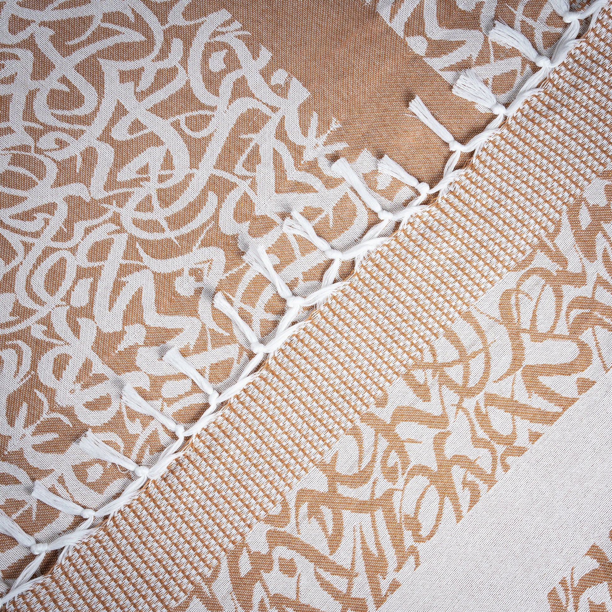 • Elegant Design: The calligraphic motif brings a graceful, artistic touch to any living space, whether draped over a sofa or styled as a bedspread.