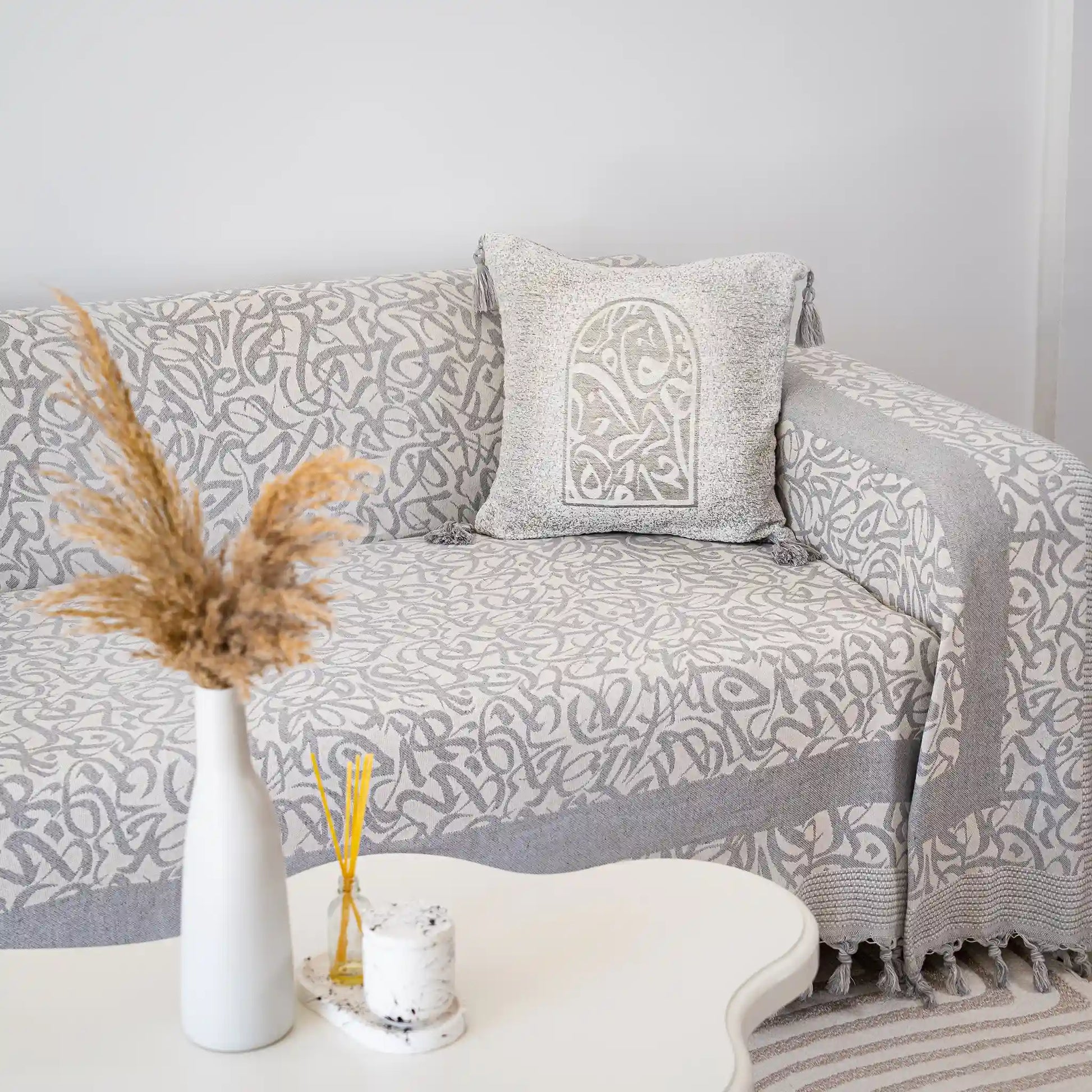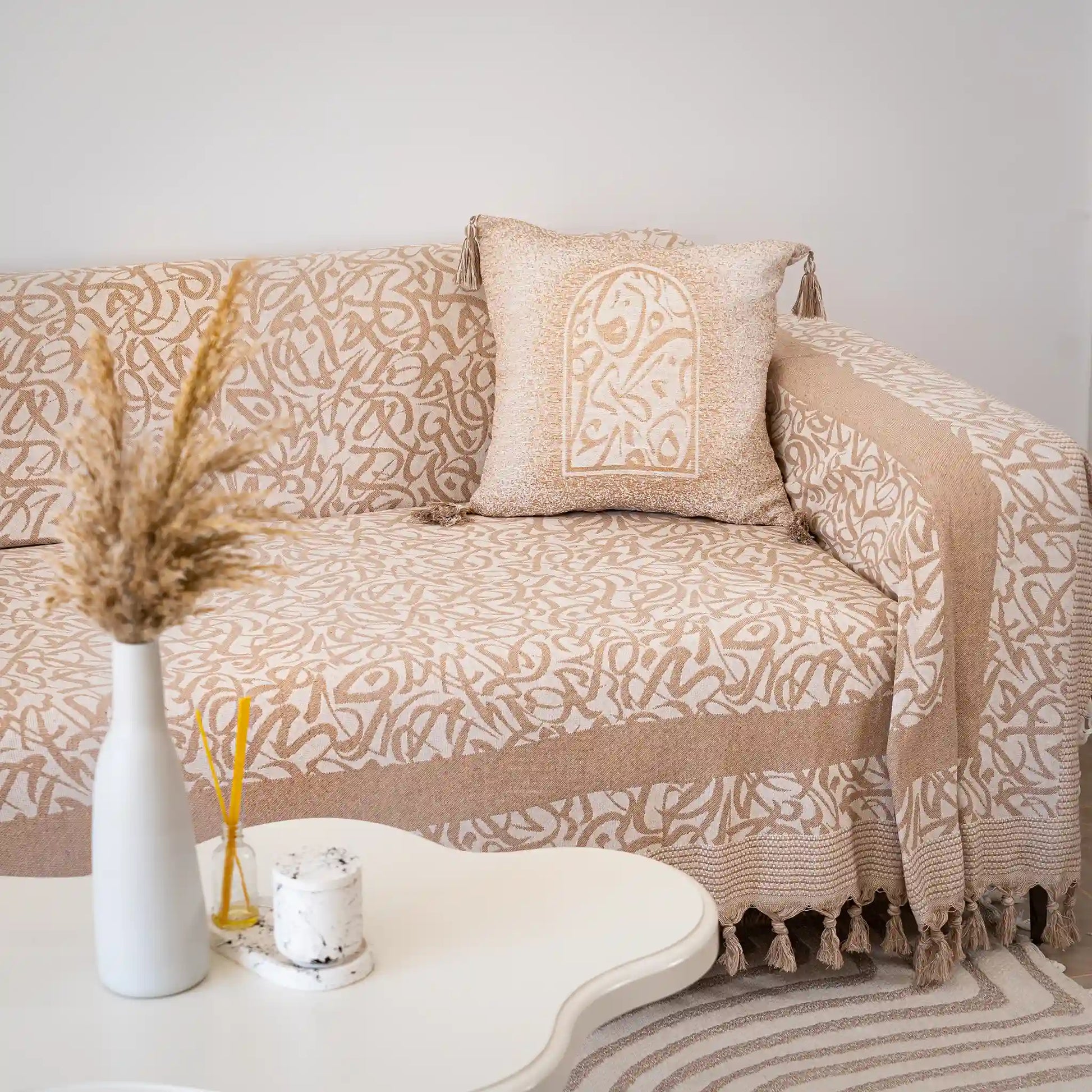 Transform your space with our Calligraphy Throw – a perfect blend of artisanal charm and refined elegance. Each piece now comes with a matching cushion cover to complete the look and offer even more comfort and harmony to your interior.